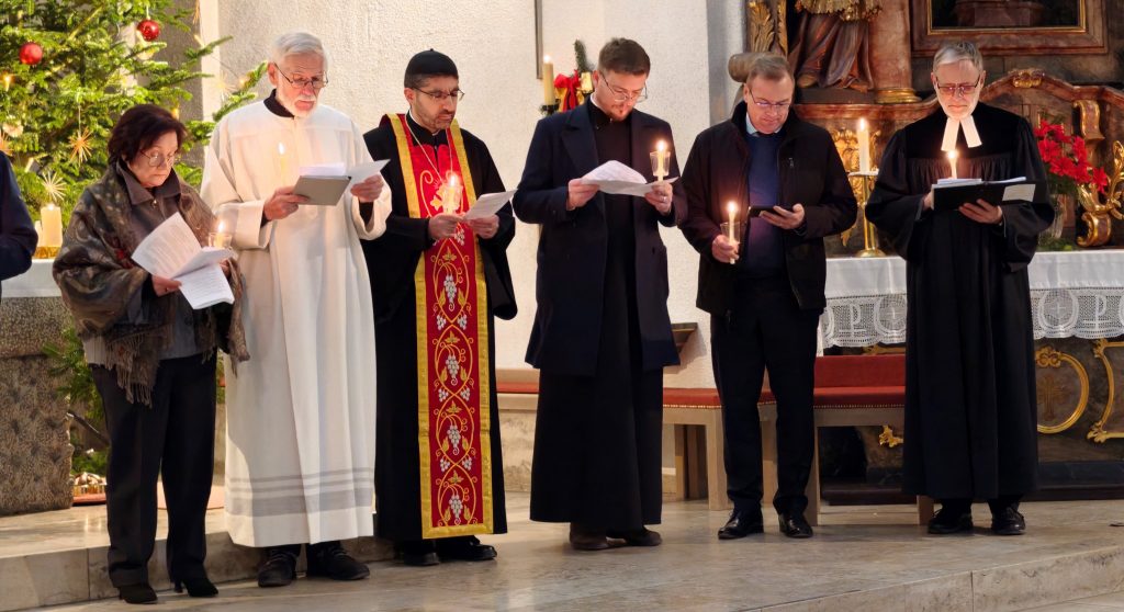 Es waren neben Vertretern der Katholischen und Evangelischen Kirchen auch Mitglieder der Rumänisch- und Syrisch-Orthodoxen Kirchen, sowie der Neuapostolischen Kirche an der Andacht beteiligt.